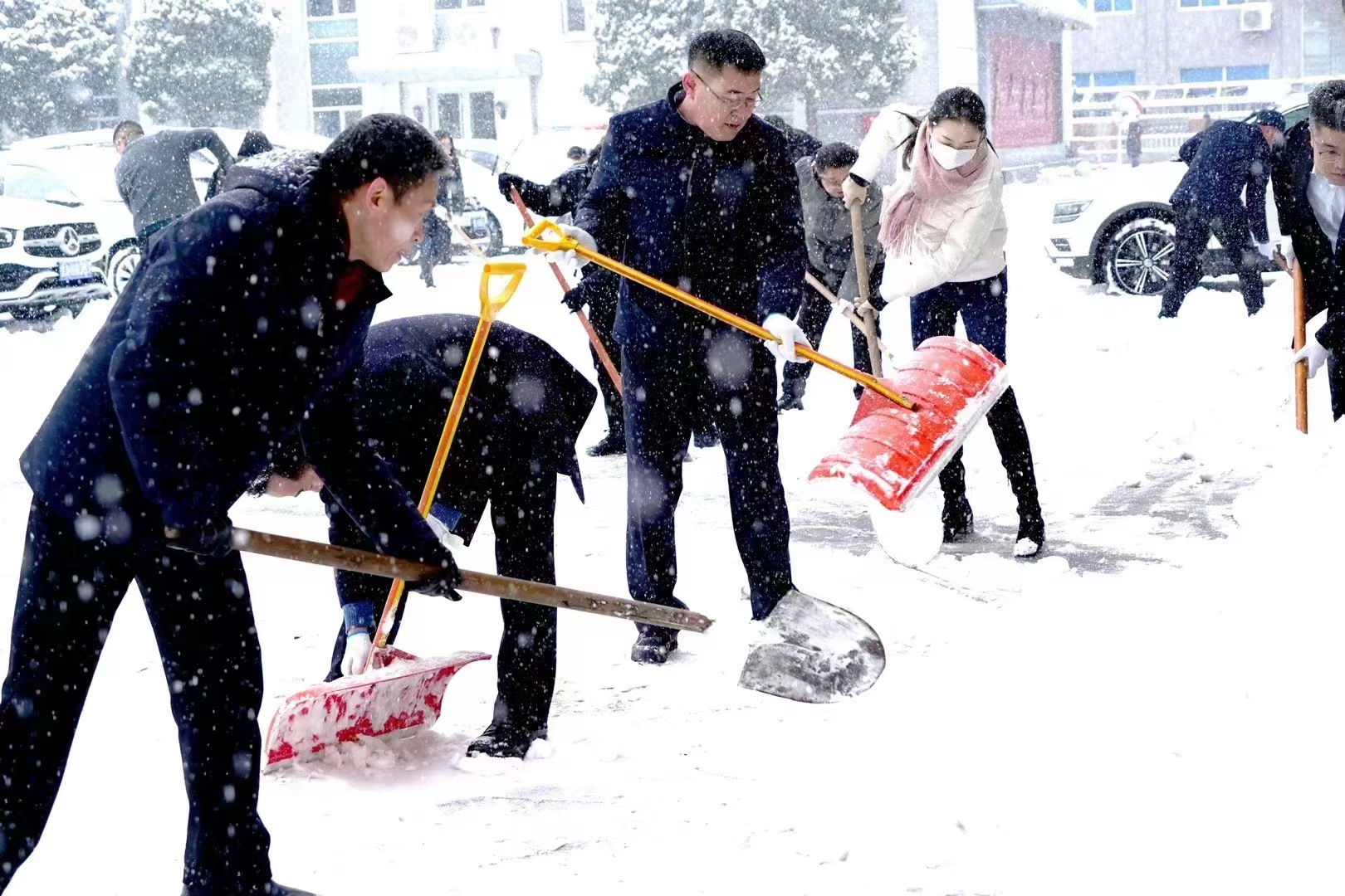 晉勤集團(tuán)全體干部職工以雪為令,迅速集結(jié),全力以赴投入除冰雪、保暢通的工作當(dāng)中,在全面除雪的基礎(chǔ)上,強(qiáng)化彎道、陡坡、臺階等易滑、易結(jié)冰區(qū)域,確!凹聪录辞濉保帯把┩B穬簟。通過大家通力合作,有效保障了行人、車輛的出行安全,為廣大干部職工、群眾出行筑起一條“安全路”。